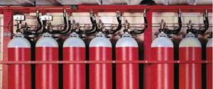 Sono in genere azionati automaticamente da un sistema di rivelazione d’incendio, che invia un segnale alla stazione di controllo, dalla quale poi parte il comando di apertura delle bombole. Nei casi in cui l’estinguente viene immesso in ambienti dove può accedere o e normalmente presente del personale, il comando di apertura prevede un ritardo automatico di scarica prefissato e segnalato da dispositivi di allarme acustici e ottici per consentire l’abbandono dei locali. La stazione di controllo, contemporaneamente al comando di apertura delle bombole, invia un comando che fa arrestare i sistemi di ventilazione del locale interessato e fa chiudere le aperture, quali serrande dei condotti di ventilazione, finestre e simili, questo per raggiungere e mantenere il grado di concentrazione nel locale richiesto dall’estinguente. Infatti per questi sistemi a saturazione totale la tenuta dei locali è di importanza fondamentale.